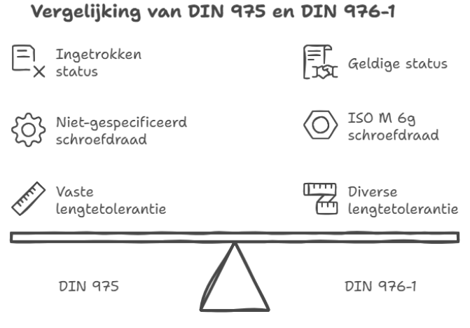 Technische vergelijking tussen DIN 975 en DIN 976