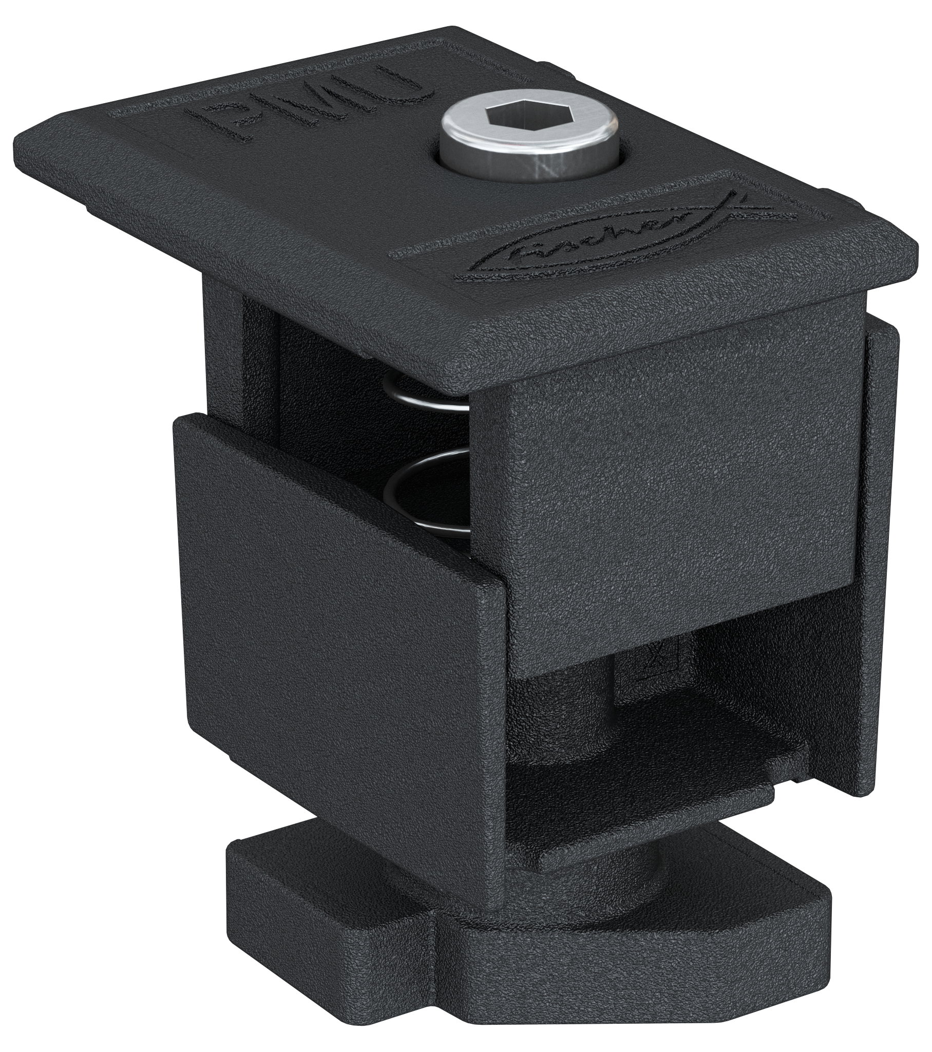 De PMU is een universele eindklem voor PV-panelen met een dikte van 30 tot 50 mm. De PMU past snel binnen de profielen door eenvoudigweg te draaien. Geschikt voor gebruik in combinatie met Solar-Light, Solar-Fish, Solar-Mid, SolarFlat en SolarMetal profielen.